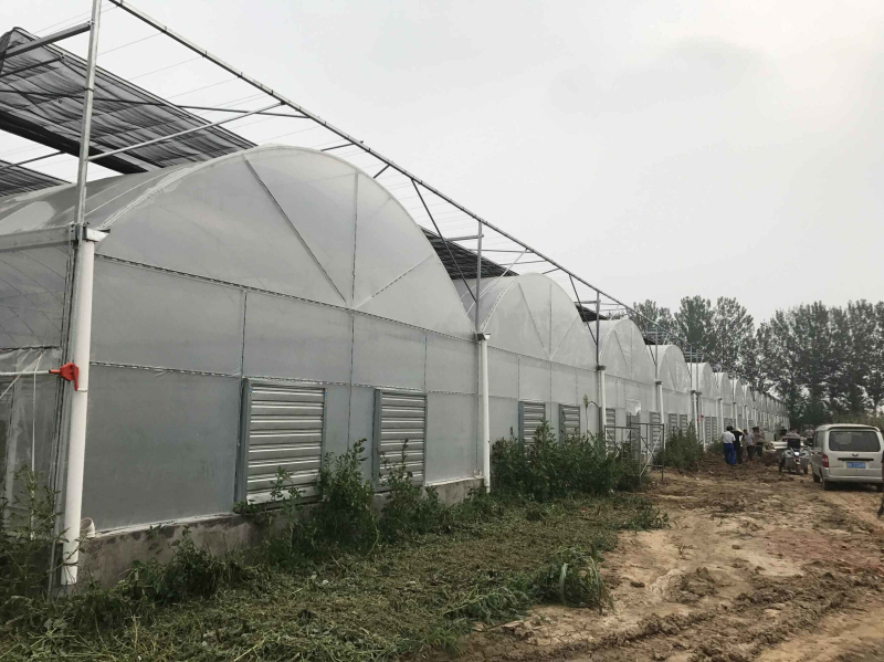 連棟薄膜溫室:連棟溫室是一種經濟型溫室,它以優美的弧線形和造價低倍受用戶歡迎。連棟薄膜溫室大棚的結構優點在于減少了頂部空間,加大了地面使用面積,寬敞的室內空間給用戶實現機械化生產操作帶來方便;同時對冬天的保溫與溫室大棚整體抗風能力起到明顯的效果。在冬季和夜間,若與保溫網配合使用可以有效阻止紅外線外逸,減少熱量損失,縮小加溫空間,從而減低溫室大棚的運行成本。該溫室適合我國大部分地區花卉、蔬菜苗木的種植。